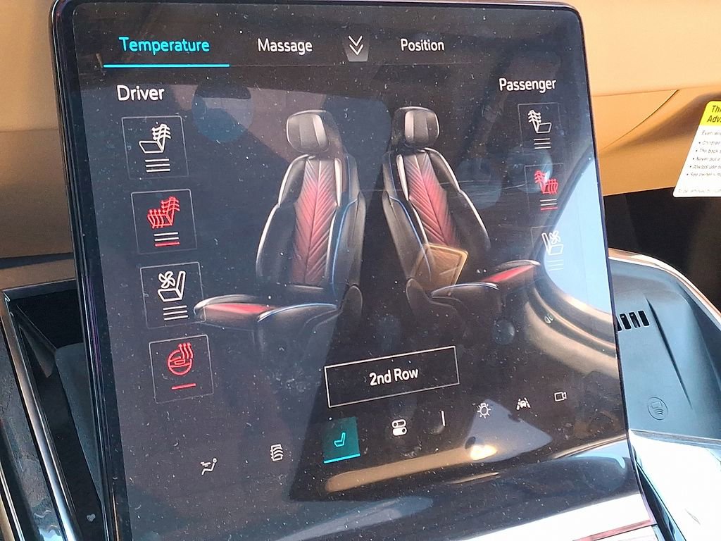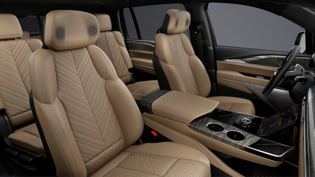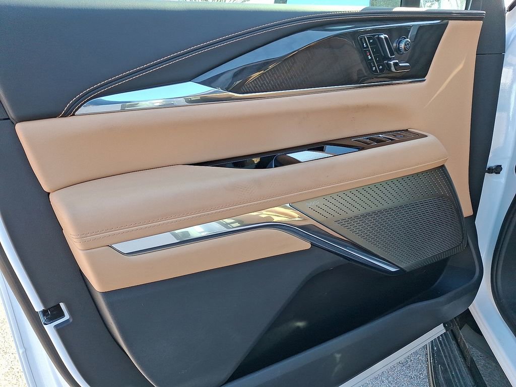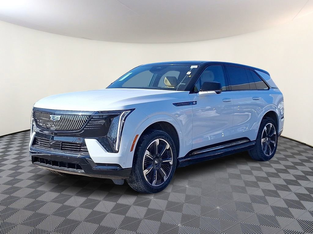 Summit White 2025 Cadillac Escalade IQ Sport 2 AWD 1-Speed Automatic Electric ZEV 680hp 3rd row seats: split-bench, 4-Way Power Driver Lumbar Seat Adjuster, 4-Wheel Disc Brakes, 8-Way Power Driver Seat Adjuster, 8-Way Power Front Passenger Seat Adjuster, ABS brakes, Adaptive suspension, Air Conditioning, Alloy wheels, AM/FM radio: SiriusXM with 360L, Audio memory, Auto High-beam Headlights, Auto-dimming door mirrors, Auto-dimming Rear-View mirror, Auto-leveling suspension, Automatic temperature control, Black 2-Tone Roof, Brake assist, Bumpers: body-color, Compass, Delay-off headlights, Driver door bin, Driver vanity mirror, Dual front impact airbags, Dual front side impact airbags, Electronic Stability Control, Emergency communication system: OnStar and Cadillac connected services capable, Four wheel independent suspension, Front anti-roll bar, Front Bucket Seats, Front Center Armrest, Front dual zone A/C, Front License Plate Bracket, Front reading lights, Fully automatic headlights, Garage door transmitter, Heads-Up Display, Heated door mirrors, Heated front seats, Heated rear seats, Heated steering wheel, HVAC memory, Illuminated entry, Knee airbag, Leather steering wheel, Low tire pressure warning, Magnetic Ride Control Suspension, Memory seat, Navigation system: Google Automotive Services Capable, Occupant sensing airbag, Outside temperature display, Overhead airbag, Overhead console, Panic alarm, Passenger door bin, Passenger vanity mirror, Power door mirrors, Power driver seat, Power Liftgate, Power passenger seat, Power steering, Power windows, Radio data system, Radio: Infotainment Experience, Rain sensing wipers, Rear air conditioning, Rear anti-roll bar, Rear dual zone A/C, Rear reading lights, Rear window defroster, Rear window wiper, Reconfigurable Full-Color Head-Up Display, Remote keyless entry, Security system, Speed control, Speed-sensing steering, Split folding rear seat, Spoiler, Steering wheel mounted audio controls, Telescoping steering wheel, Tilt steering wheel, Traction control, Trip computer, Turn signal indicator mirrors, Variably intermittent wipers, Ventilated front seats, Wheels: 24 7-Spoke Diamond Cut Face Alloy.